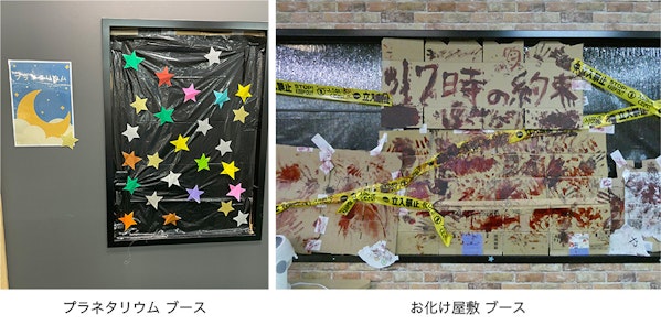 迎えた本番当日。お化け屋敷、クイズ大会、プラネタリウム、作品展示など、多種多様なブースが立ち並びました。 当日は生徒だけでなく、保護者も招待し、多くの企画に一緒に参加していただきました。どのブースも大盛況となり、生徒たちが楽しみながらも責任を持って運営にあたる姿が印象的でした。