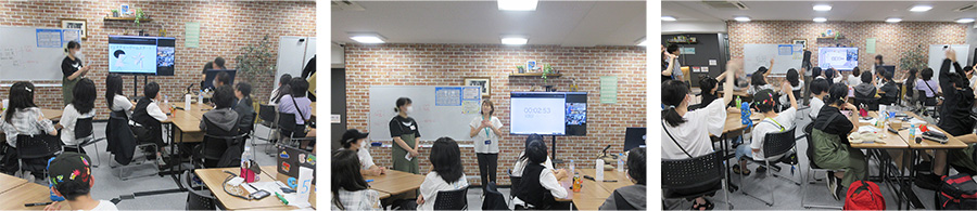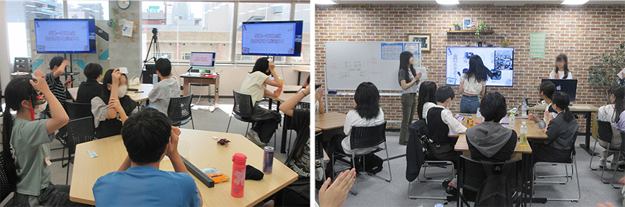 錦糸町駅北口キャンパスでは、体を動かすジェスチャーゲームで盛り上がりました。 実行委員の生徒たちが「どうすればみんなが楽しめるか」を考え、何度も話し合いを重ねて準備をしました。生徒もスタッフも一緒になって、笑顔で楽しむ姿が見られました。