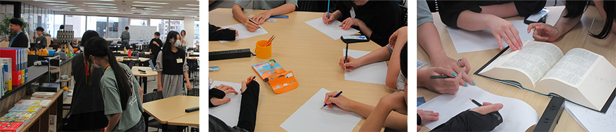 - 辞書単語当てゲーム:辞書に載っている言葉を選び、その説明から何の単語かを当てるゲームです。辞書から一つの言葉を探す体験は、生徒にとって新鮮だったようです。
